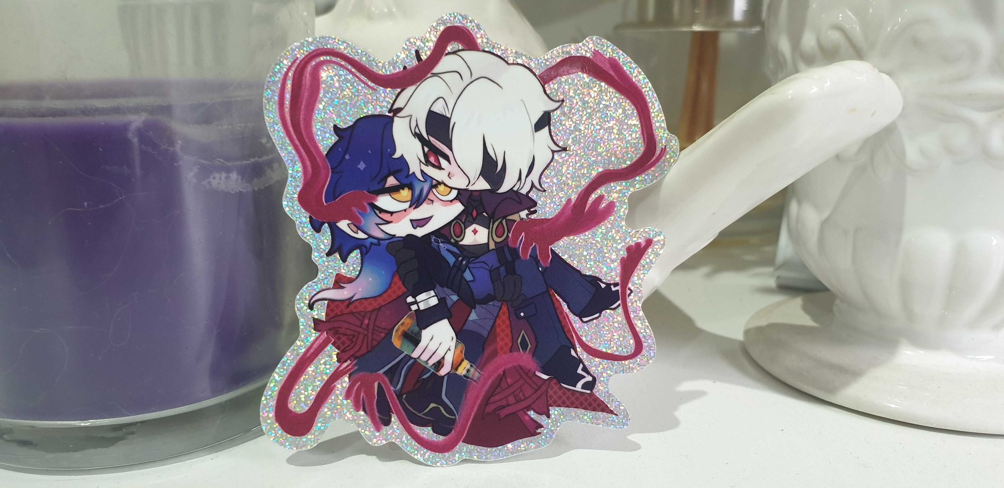 Holographic Glitter sticker, 3" (76.22mm) featuring the ship between rerir and flins.